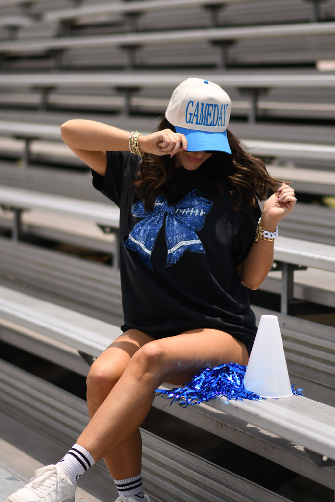Blue Faux Glitter Football Tee