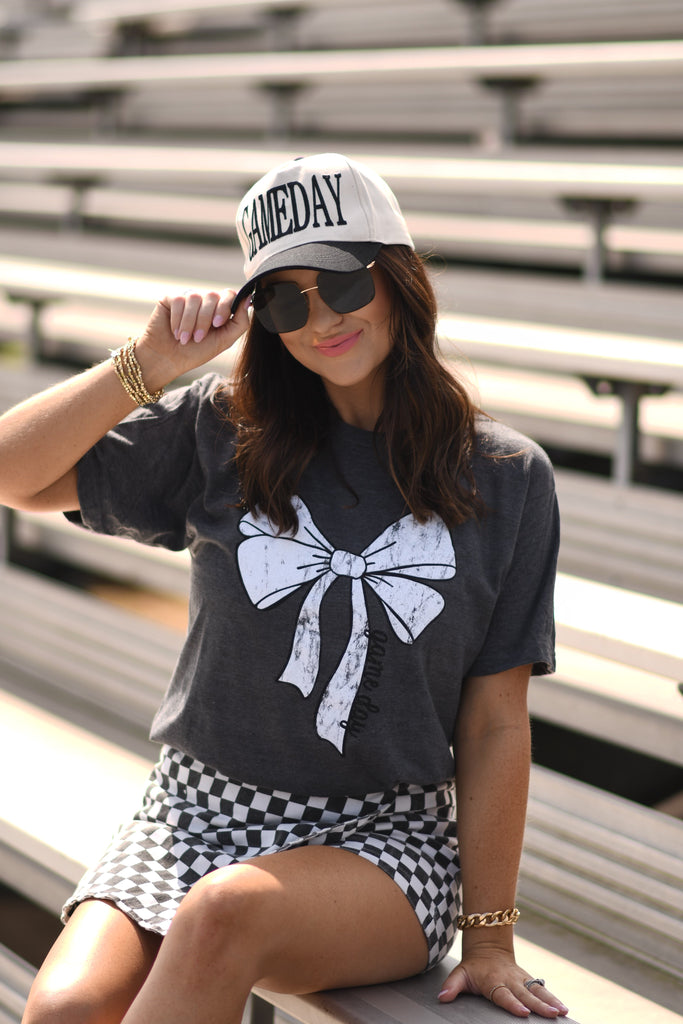 **SALE** RTS Heather Charcoal Game Day Bow Tee